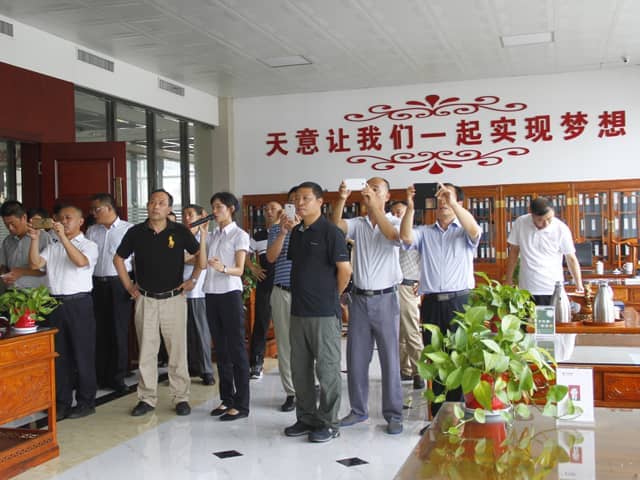 隨后,考察團在天意三樓智能會議中心展開座談交流,天意機械董事長劉洪彬?qū)|平縣縣委一行領導的到來表示熱烈歡迎,并對天意公司近年來在國內(nèi)外發(fā)展狀況作了簡單介紹,兗州區(qū)區(qū)委常委、副區(qū)長邱培友以“重起點、重結(jié)構(gòu)、重研發(fā)”幾個方面介紹了兗州區(qū)產(chǎn)業(yè)發(fā)展情況。之后雙方領導就企業(yè)轉(zhuǎn)型升級,調(diào)整戰(zhàn)略結(jié)構(gòu)、驅(qū)動企業(yè)發(fā)展作了相互交流探討。最后,東平縣縣政府副縣長候圣玉對天意機械的熱情接待表示感謝,表示對這次考察的收獲巨大,希望下次可以更深入的交流相互借取經(jīng)驗,讓企業(yè)發(fā)展的更好,更快。